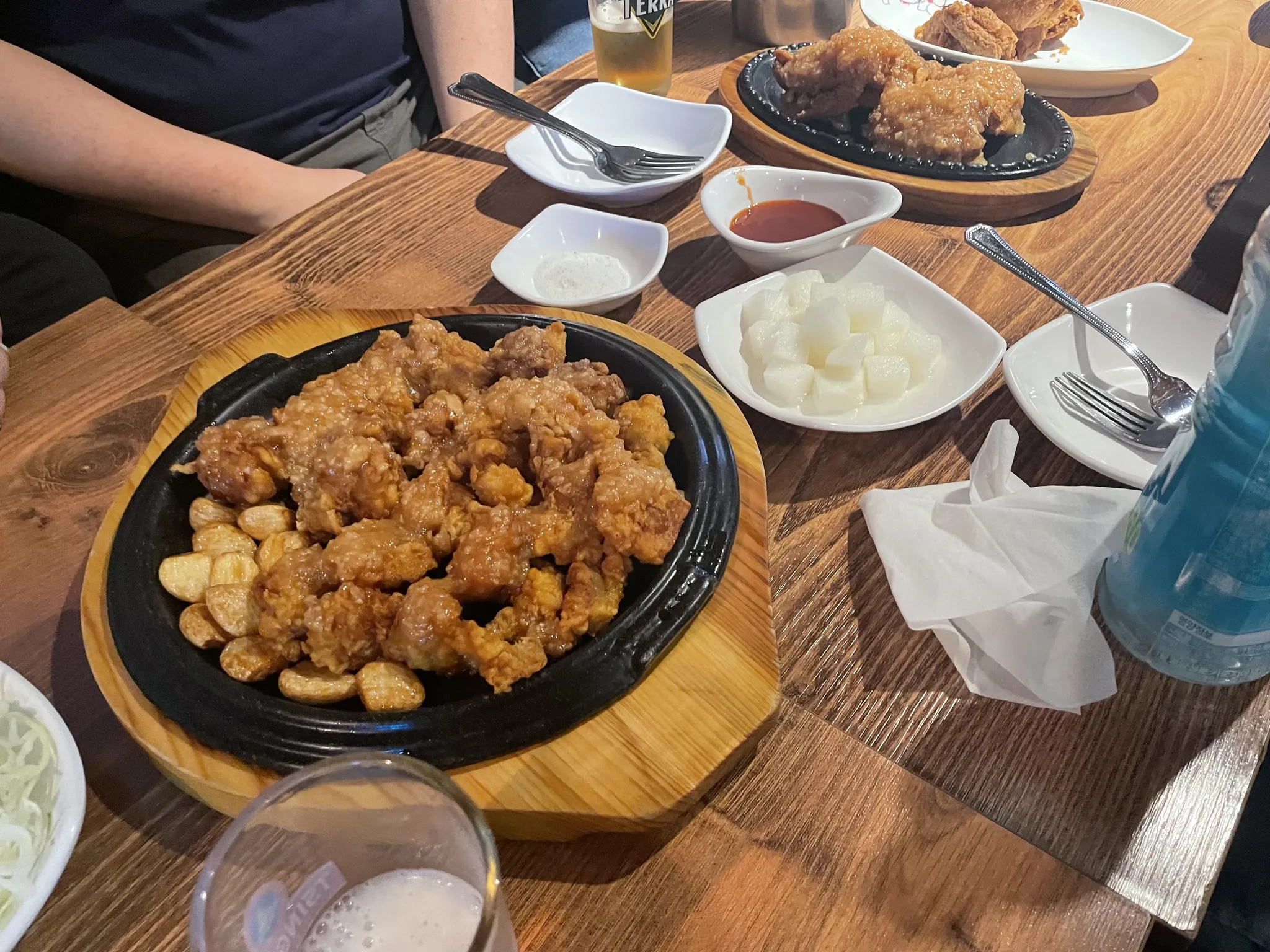 뒷풀이 메뉴는 치킨과 골뱅이 소면이었습니다