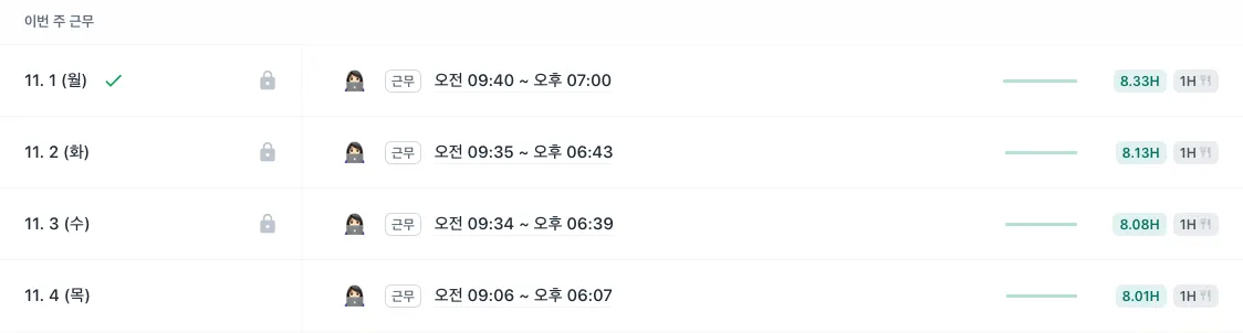 콜론디는 9시~11시 사이에 자율 출근 방식을 진행하고 있습니다.