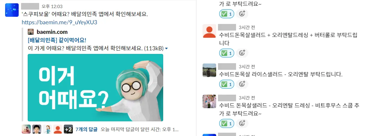 (요즘 콜론디 동료들은 식이조절을 위해 샐러드를 많이 주문합니다